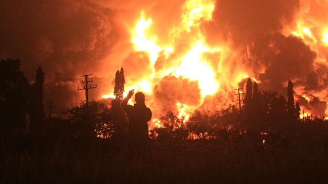 Api melahap kilang minyak Pertamina di Balongan, Indramayu. (Ist)