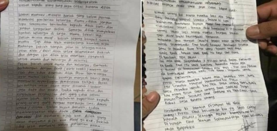 Dua tulisan tangan teroris penyerang Katedral dan teroris penyerang Mabes Polri. (Ist)
