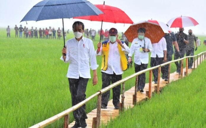 Menurut Jokowi, pembangunan lumbung pangan tersebut untuk memenuhi ketahanan pangan nasional di masa depan.