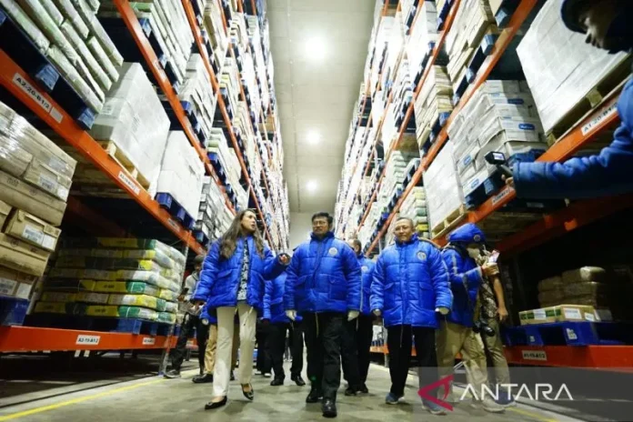 Syahrul Yasin turut mengecek langsung ketersediaan stok daging potong di cold storage atau tempat penyimpanan daging beku milik PT. Dua Putra Perkasa Pratama di Kecamatan Rawalumbu, Kota Bekasi, Jawa Barat.