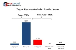 JAKARTA – Lembaga Voxpopuli Research Center merilis hasil survei terkini dimana 77,3 persen publik merasa puas dipimpin Presiden Joko Widodo selama setahun terakhir.