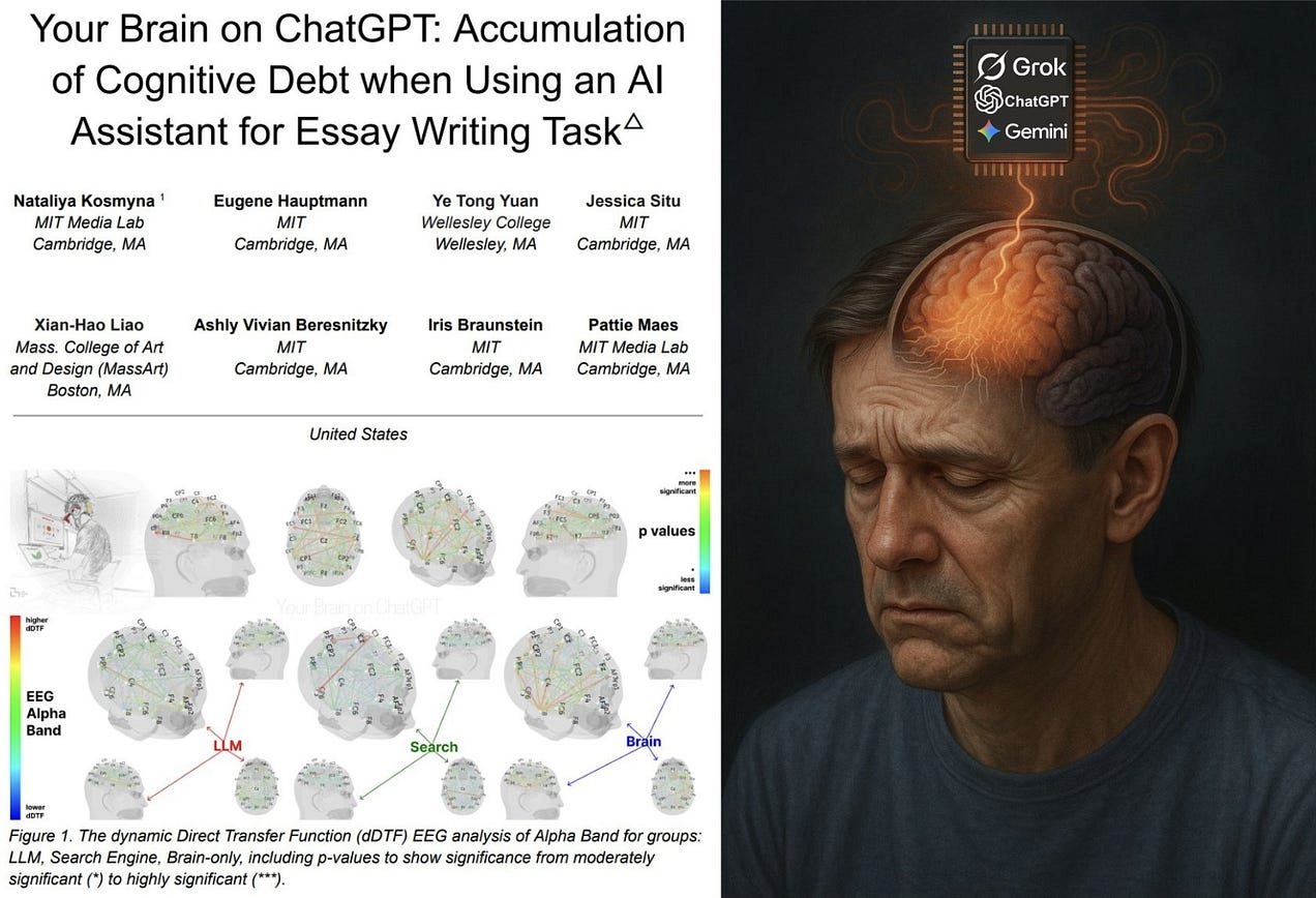 Sebuah studi neurokognitif MIT terkini —Otak Anda pada ChatGPT: Akumulasi Utang Kognitif saat Menggunakan Asisten AI untuk Penulisan Esai —menunjukkan bahwa ketergantungan pada model bahasa besar seperti Grok, ChatGPT, dan Gemini menyebabkan penekanan saraf yang terukur dan bertahan lama.