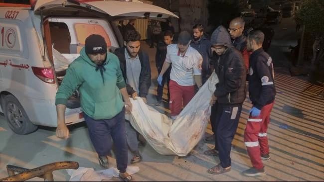 Seorang korban tewas akibat serangan tentara Israel dibawa ke rumah sakit di Khan Younis, Jalur Gaza selatan, Selasa 18 Maret 2025. (Ist)