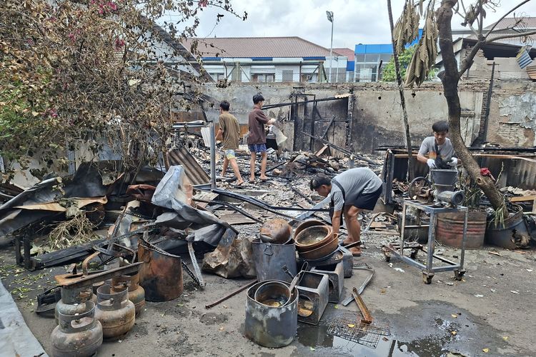 Namun, karena hampir seluruh peralatan masak dan tabung gas hangus terbakar, hanya besi tua yang bisa mereka kumpulkan. Uang hasil penjualan besi kiloan itu rencananya akan dibagi rata kepada lima karyawan yang kini kehilangan pekerjaan.