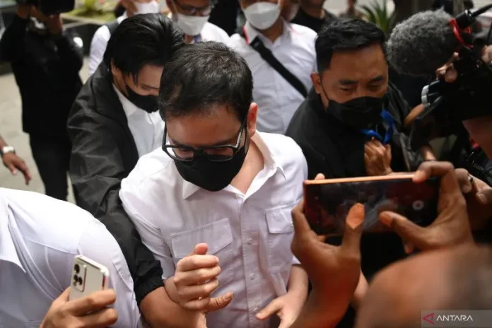 Mahendra Dito (kiri) meninggalkan Gedung Merah Putih KPK seusai diperiksa di Jakarta, Senin (6/2/2023). (Ist)