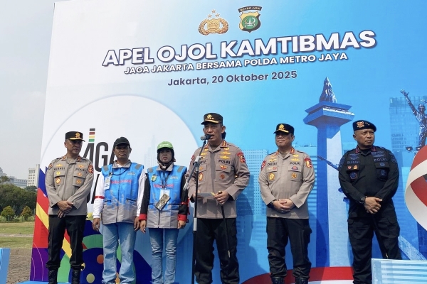Adapun sebanyak 10.000 pengemudi ojol membaca deklarasi Jaga Jakarta dalam apel yang dipimpin oleh Kapolri Jenderal Pol Listyo Sigit Prabowo, Senin (20/10/2025).