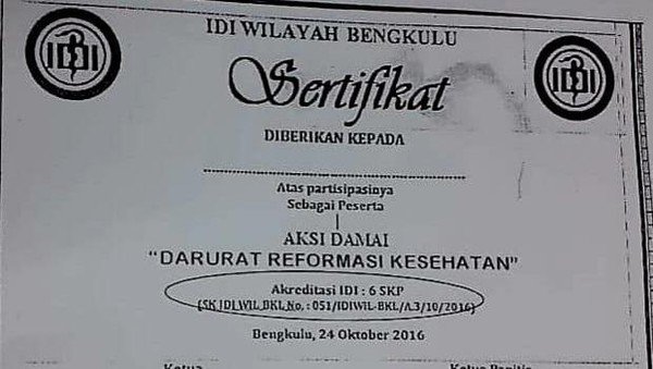 Menyoal viral pernyataan dan penampakan sertifikat penghargaan peserta demo yang dirilis IDI Cabang Wilayah Bengkulu, dr Adib meminta publik tidak lantas mengartikan penyalahgunaan kebutuhan SKP.