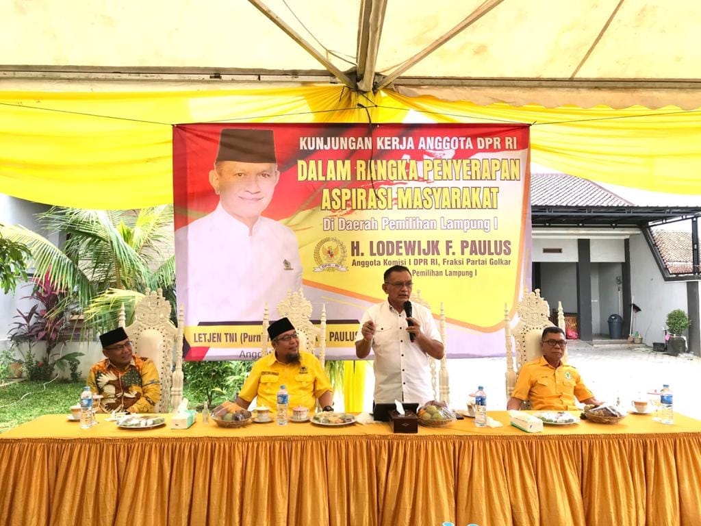 Kehadiran H. Lodewijk F. Paulus yang juga Sekreraris Jenderal DPP Partai Golkar ini, disambut oleh Sekretaris DPD Partai Golkar Provinsi Lampung H. Ismet Roni, SH, MH, Ketua DPD Partai Golkar Lampung Selatan H. Tony Eka Candra dan sejumlah Pengurus Partai Golkar Provinsi serta Pengurus Partai Golkar Lampung Selatan dan seluruh Anggota Fraksi Partai Golkar DPRD Lampung Selatan. Kegiatan Reses dan Penyerapan Aspirasi Anggota DPR RI ini juga dihadiri Tokoh Masyarakat, Agama, Perempuan dan Tokoh Pemuda.
