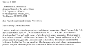 Pada bulan Oktober 2017, Anggota Kongres Bill Posey mengirim surat kepada Jaksa Agung Jeff Sessions yang memintanya untuk melanjutkan upaya mengekstradisi dan menuntut Dr. Poul Thorsen atas pencucian uang lebih dari $1 juta dari CDC. Tangkapannya adalah bahwa Thorsen dikontrak oleh CDC untuk melakukan penelitian penipuan di Denmark yang akan menutupi hubungan apa pun antara thimerosal pengawet vaksin dan autisme.