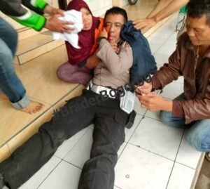 Petugas polisi yang terluka dalam bom bunuh diri di Bandung, Rabu (7/12). (Ist)