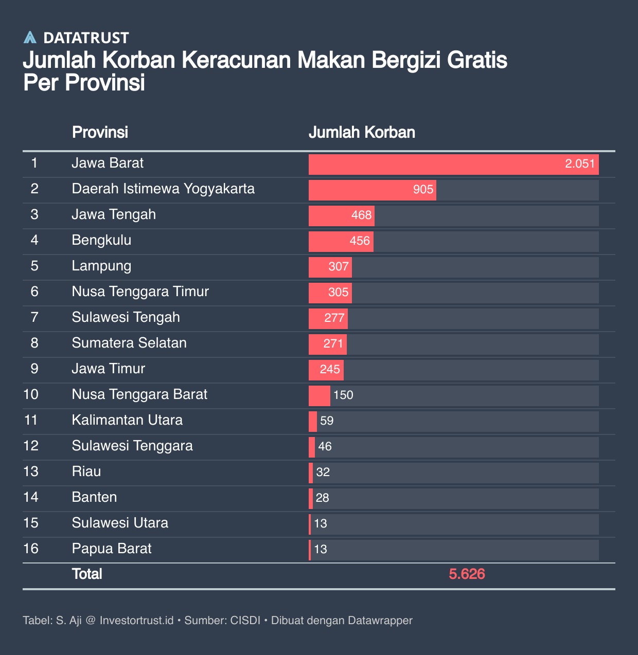 Data korban keracunan MBG per provinsi. (Infografis: DataTrust)