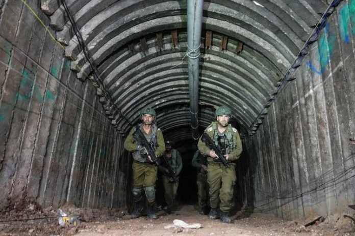 YERUSALEM – Di ujung terowongan jebakan sepanjang satu kilometer di Jalur Gaza, tentara Israel menemukan sel-sel sempit di mana militer mengatakan Hamas menahan sekitar 20 sandera.