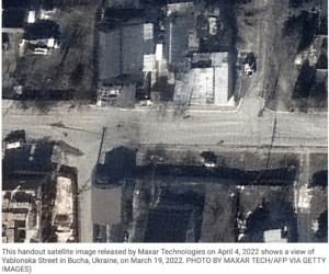 THE New York Times menerbitkan pada tanggal 4 April sebuah foto satelit, tertanggal 19 Maret, menunjukkan sebuah jalan di kota Bucha, Ukraina, yang dipenuhi dengan mayat. Foto itu, yang disebarluaskan oleh media arus utama dalam skala global, disajikan sebagai bukti “kejahatan perang yang dilakukan oleh pasukan Rusia di Ukraina.”